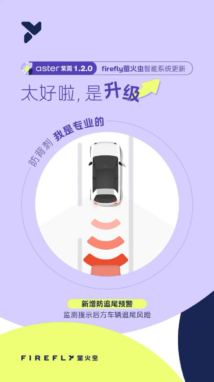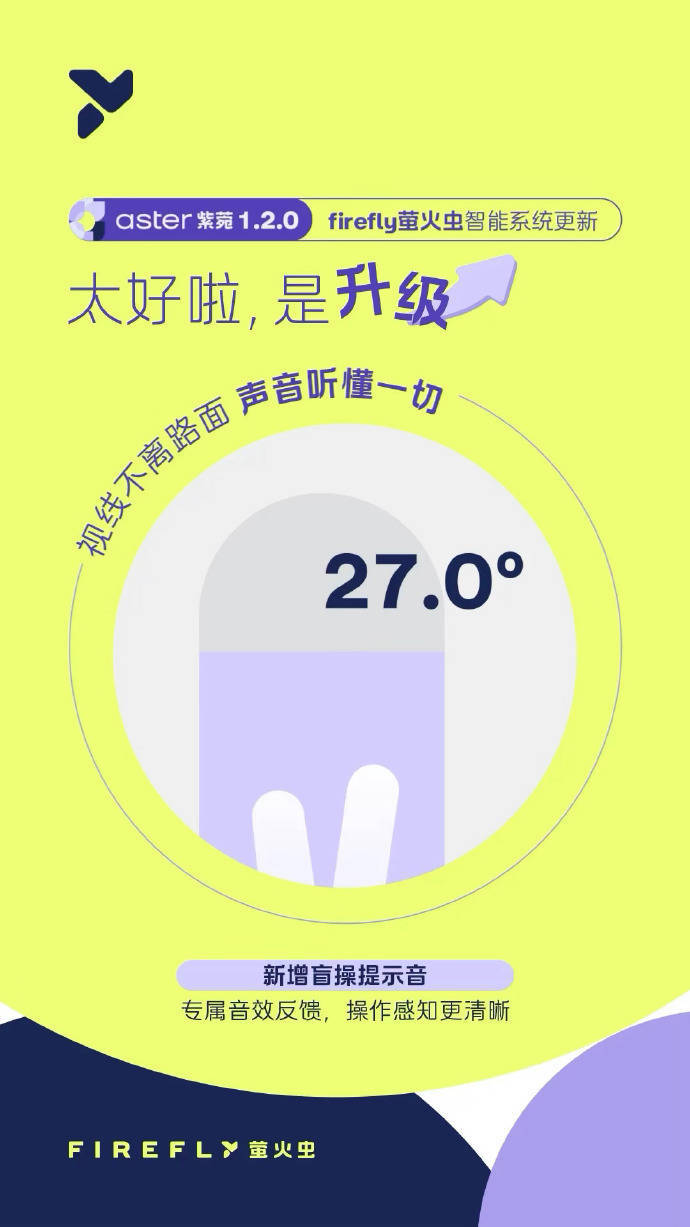 凤凰网科技讯 9月25日,firefly萤火虫汽车官方宣布,其车载智能系统aster紫菀迎来1.2.0版本更新牛来乐,国庆节前全面上线。