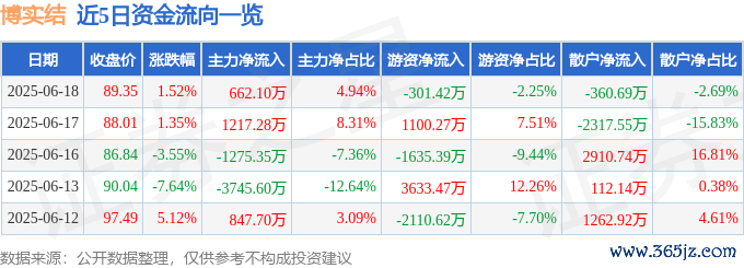 6月18日的资金流向数据方面,主力资金净流入662.1万元,占总成交额4.94%,游资资金净流出301.42万元,占总成交额2.25%,散户资金净流出360.69万元,占总成交额2.69%。